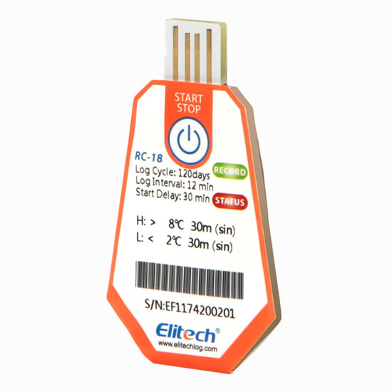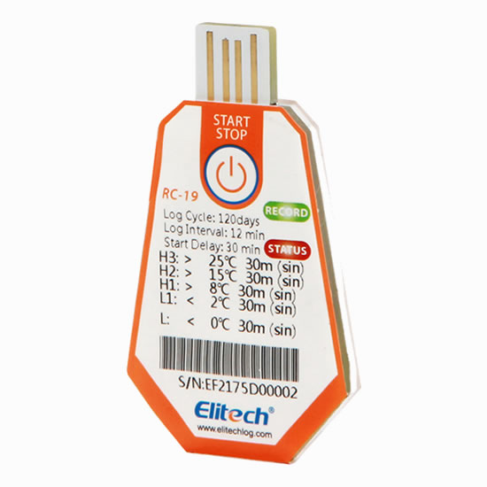 El registrador de datos de temperatura de un solo uso RC-18/19 está diseñado para el monitoreo de la cadena de frío de los alimentos. Está alimentado por una batería de litio de temperatura amplia CR2450. Se puede almacenar y utilizar a temperatura normal durante 2 años. Puede generar automáticamente un informe en PDF sin software de computadora.